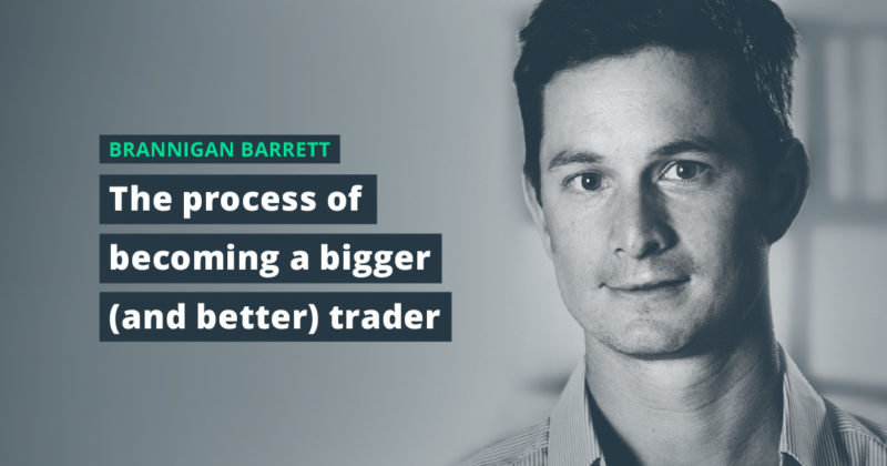 - Brannigan speaks about his process for progressively becoming a bigger trader, and situations when feeling uncomfortable is healthy for your development.