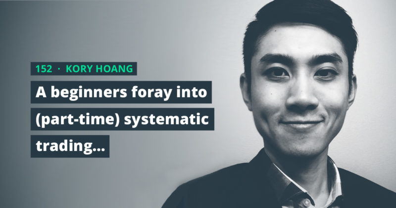 In terms of how he trades; Kory is a retail systematic trader. He’s running numerous algorithmic strategies, which he’s developed (all of which are fairly simple). These run on various ETFs, ETNs and even some cryptocurrencies.