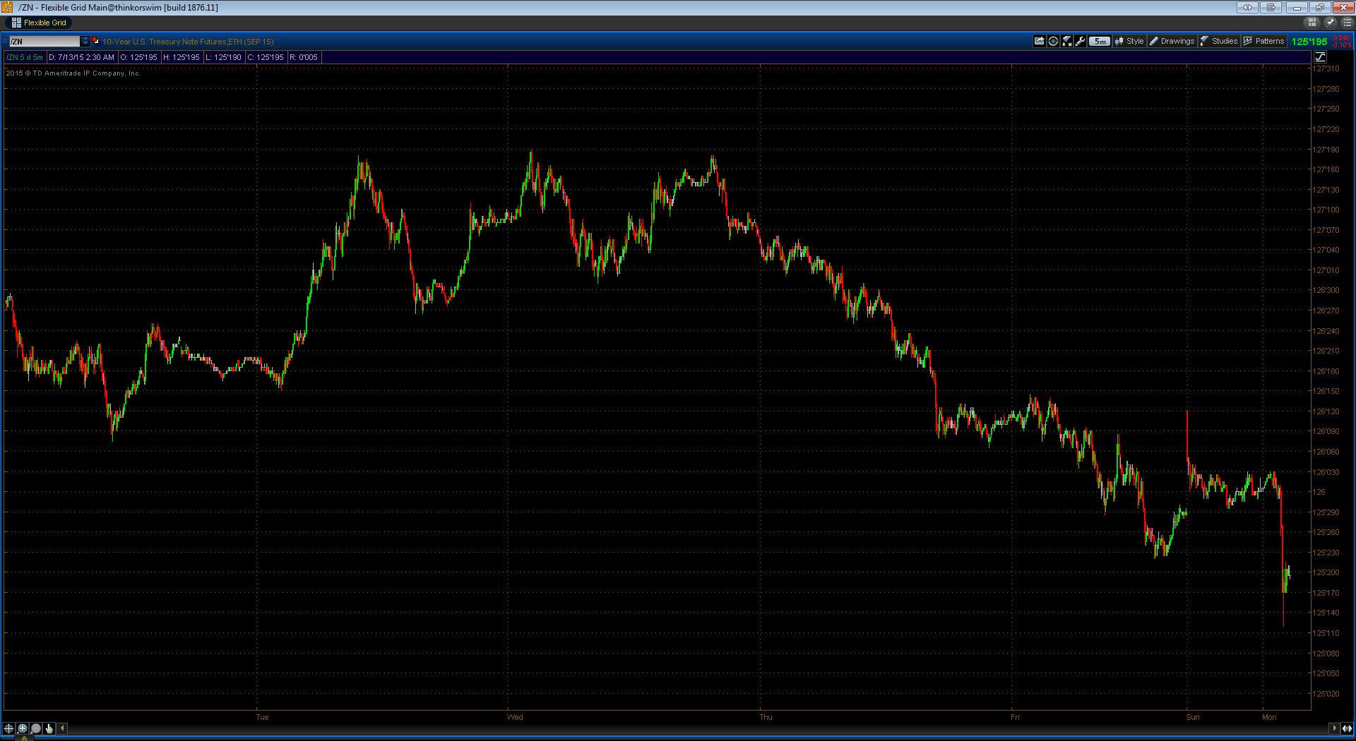 As much as I’d love to jump straight into TradingTechnologies’ X_Trader algo lab, such an approach would be prohibitive for a number of reasons. ThinkOrSwim is far from an ideal environment and my grievances of it are many HOWEVER, it’s free, it’s quite functional, and it allows for virtually immediate interaction. From my origins I also happen to know it very well, which aids in demonstration. A quick example: